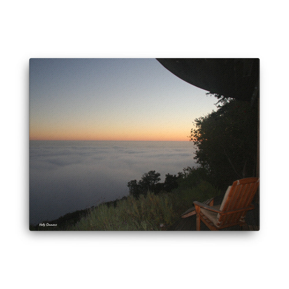 A Seat Above the Fog in Big Sur - Original Photo on Canvas by Holly Simmons. It's hand-stretched on a poly-cotton blend canvas with a matte finish coating. Please Note: Prices include $14 shipping and handling charge. All canvas prints are custom-prepared after order. Please allow 10 days.