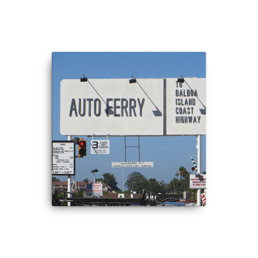 Newport Beach Ferry - Balboa Island - Original Photo on Canvas by Holly Simmons. 2 Sizes Available. It's hand-stretched on a poly-cotton blend canvas with a matte finish coating. Please Note: Prices include $14 shipping and handling charge. All canvas prints are custom-prepared after order. Please allow 10 days.