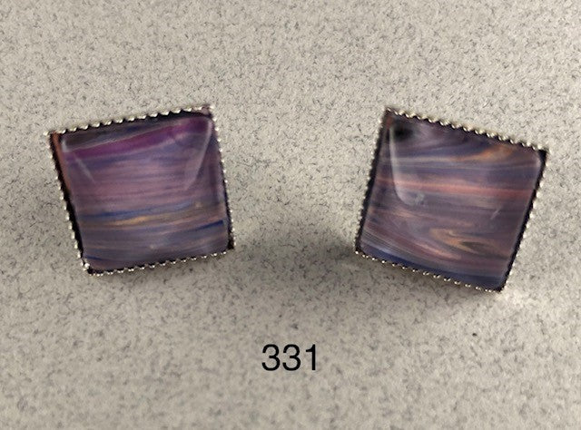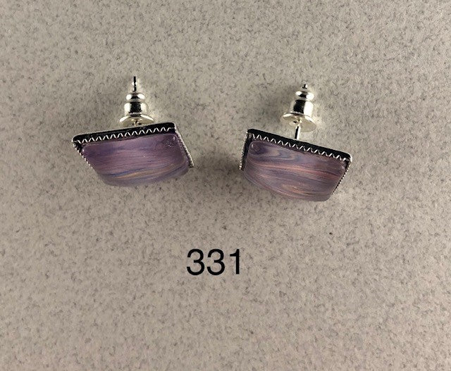 Original Handcrafted Square Stud Earrings - 1 Pair - 12mm (0.48 inch) with silver metal alloy base, by Holly W Simmons Fine Art. All pieces are one-of-a-kind. Price includes USPS Priority Mail shipping within USA. Item #331